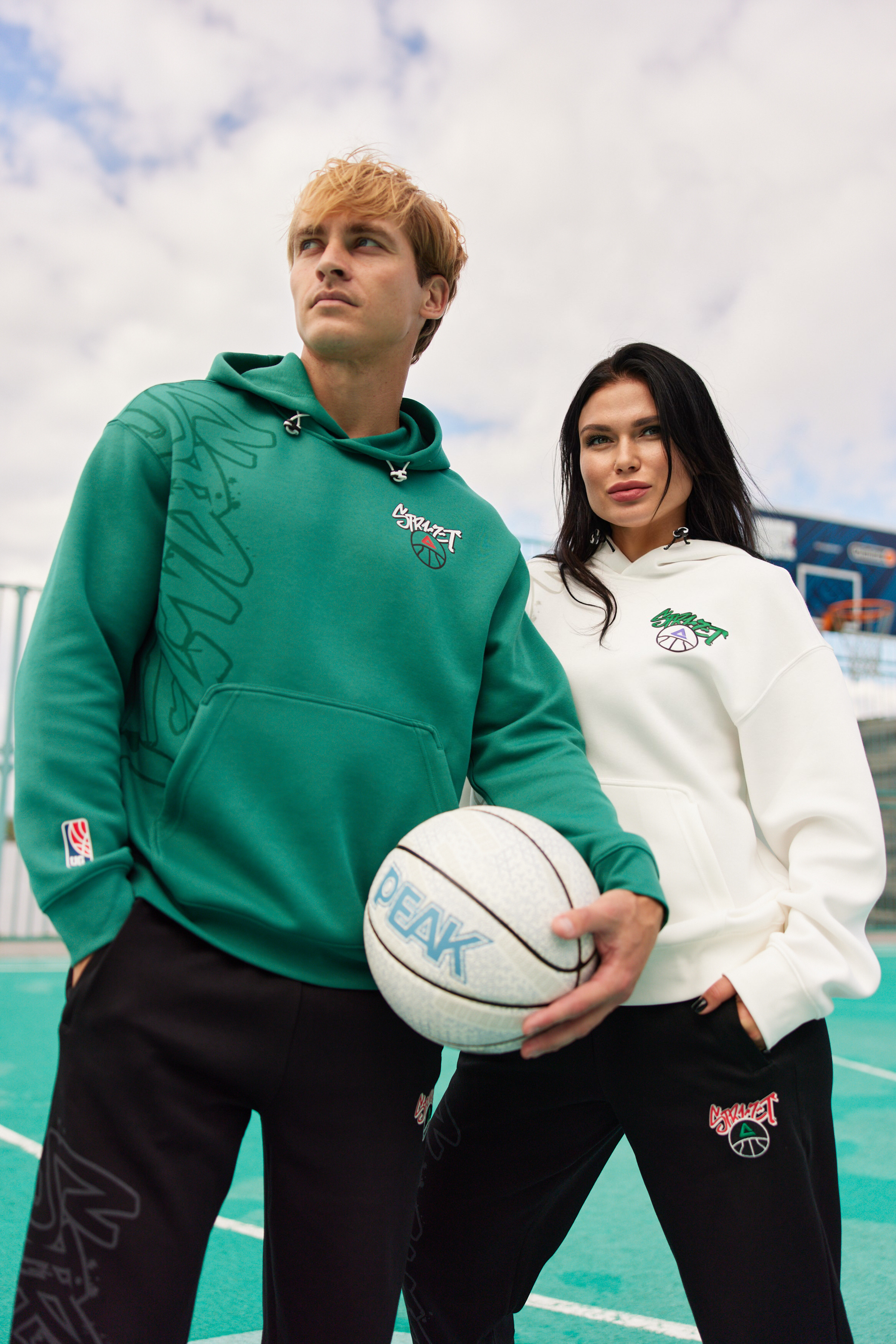 Кофта с баскетбольным принтом выполнена из плотного трикотажа, что обеспечивает свободу действий и комфорт на протяжении всего дня. Она теплая и мягкая, слегка тянется, имеет гладкую матовую поверхность, легкая в уходе. Прямой крой оверсайз не сковывает движений, а широкая трикотажная резинка по низу изделия и на рукавах защитит от ветра и непогоды. Капюшон можно затянуть на резиночки, впереди расположены карманы кенгуру.