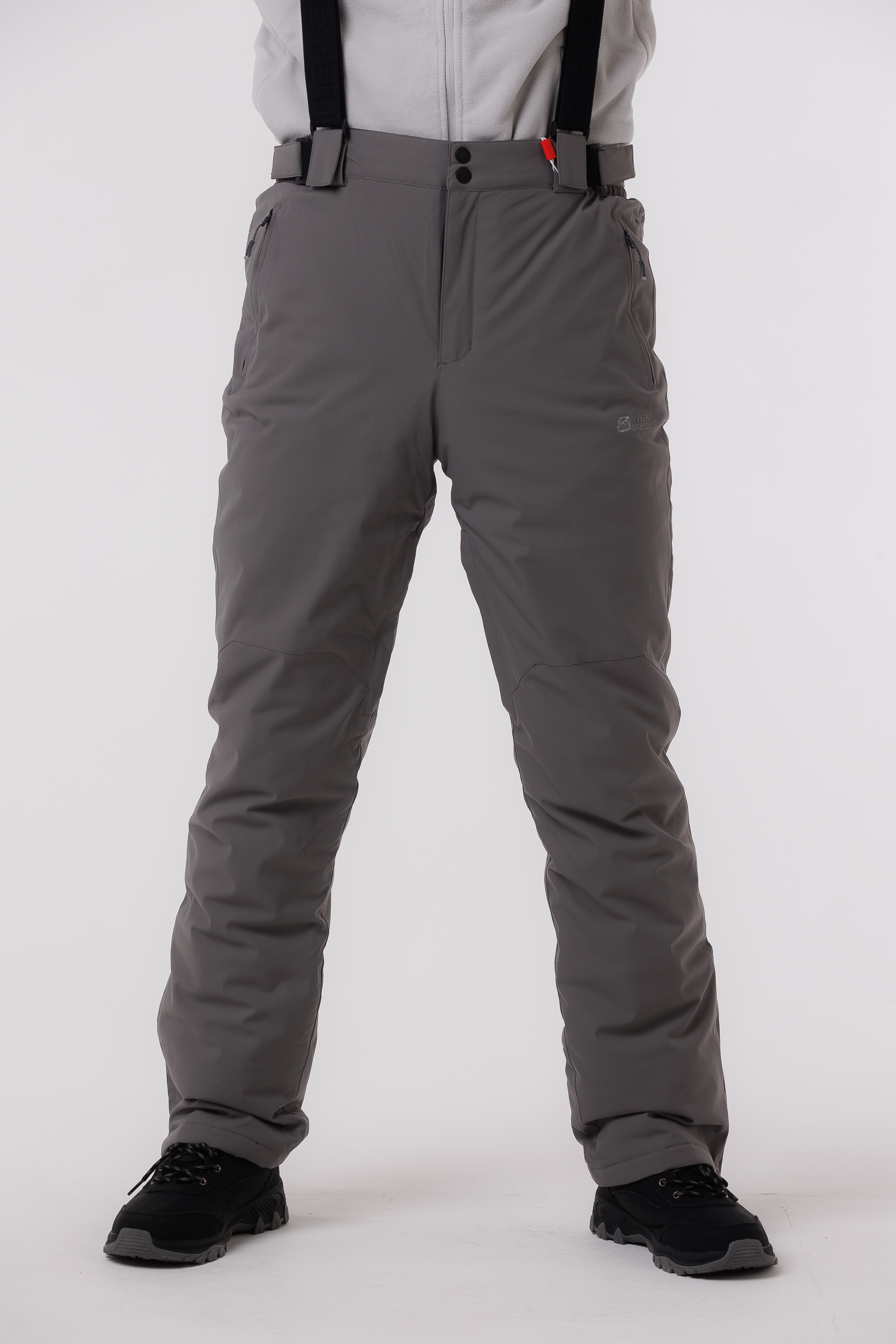 Визуально модель выдержана в минималистичном ключе. Серый цвет смотрится сдержанно и универсально, легко сочетаясь с куртками и верхом разного стиля. Конструктивные швы в области коленей подчёркивают функциональный подход и добавляют динамики форме. Карманы на молниях аккуратно встроены в крой и не нарушают чистоту линий. Пояс с подтяжками усиливает ощущение надёжной посадки и подчёркивает спортивную направленность модели.
