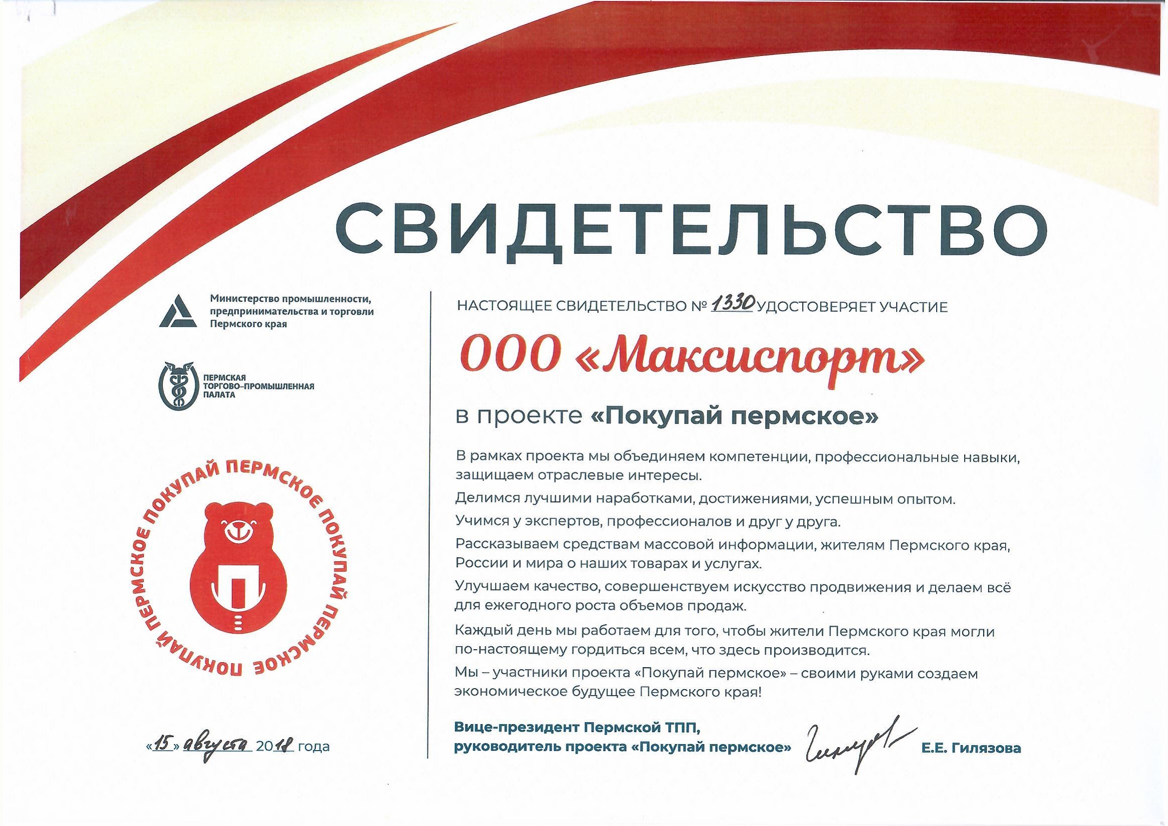 Документ, подтверждающий участие MAXXISPORT в региональной инициативе, направленной на поддержку местных производителей и повышение качества товаров.